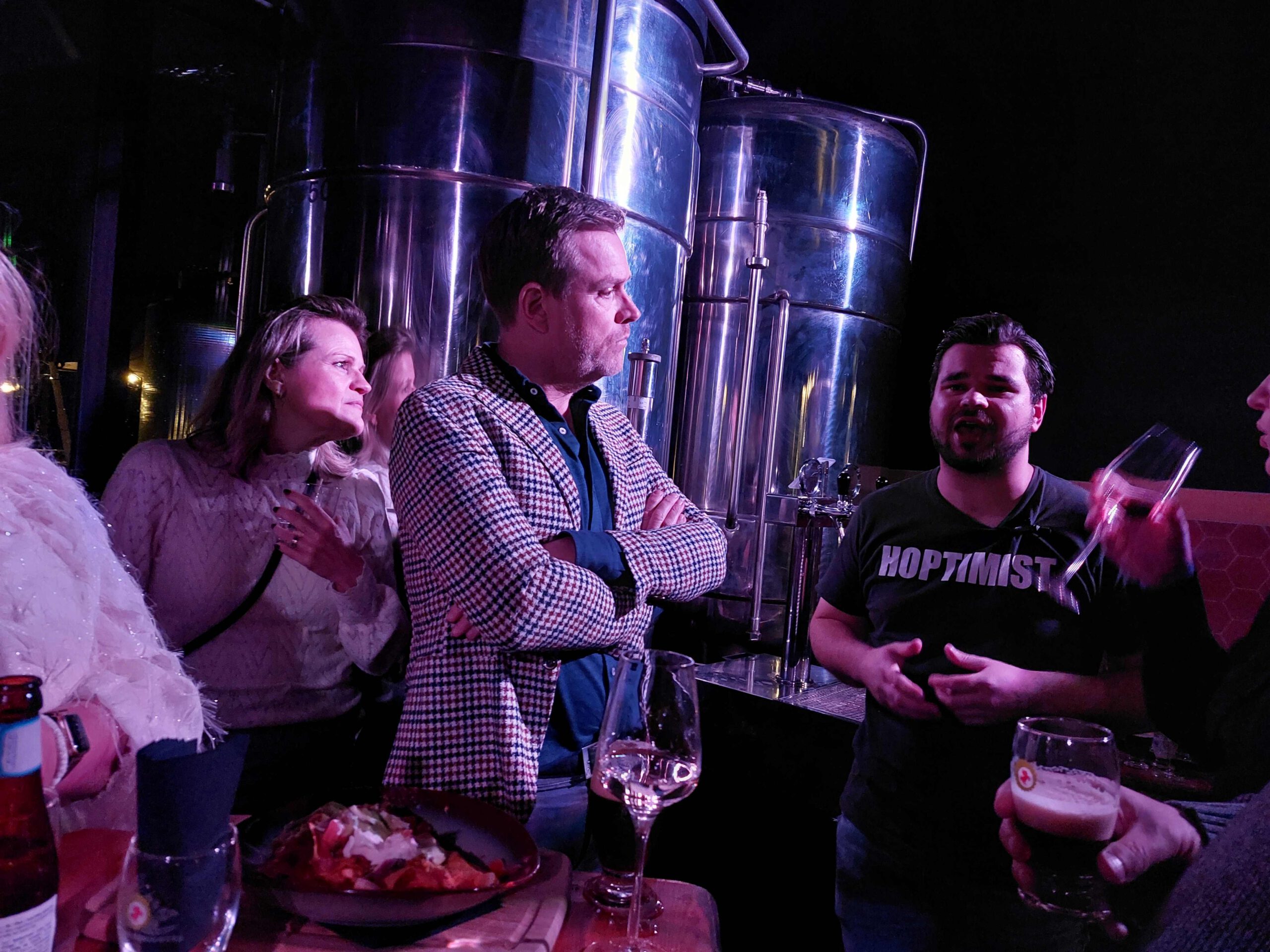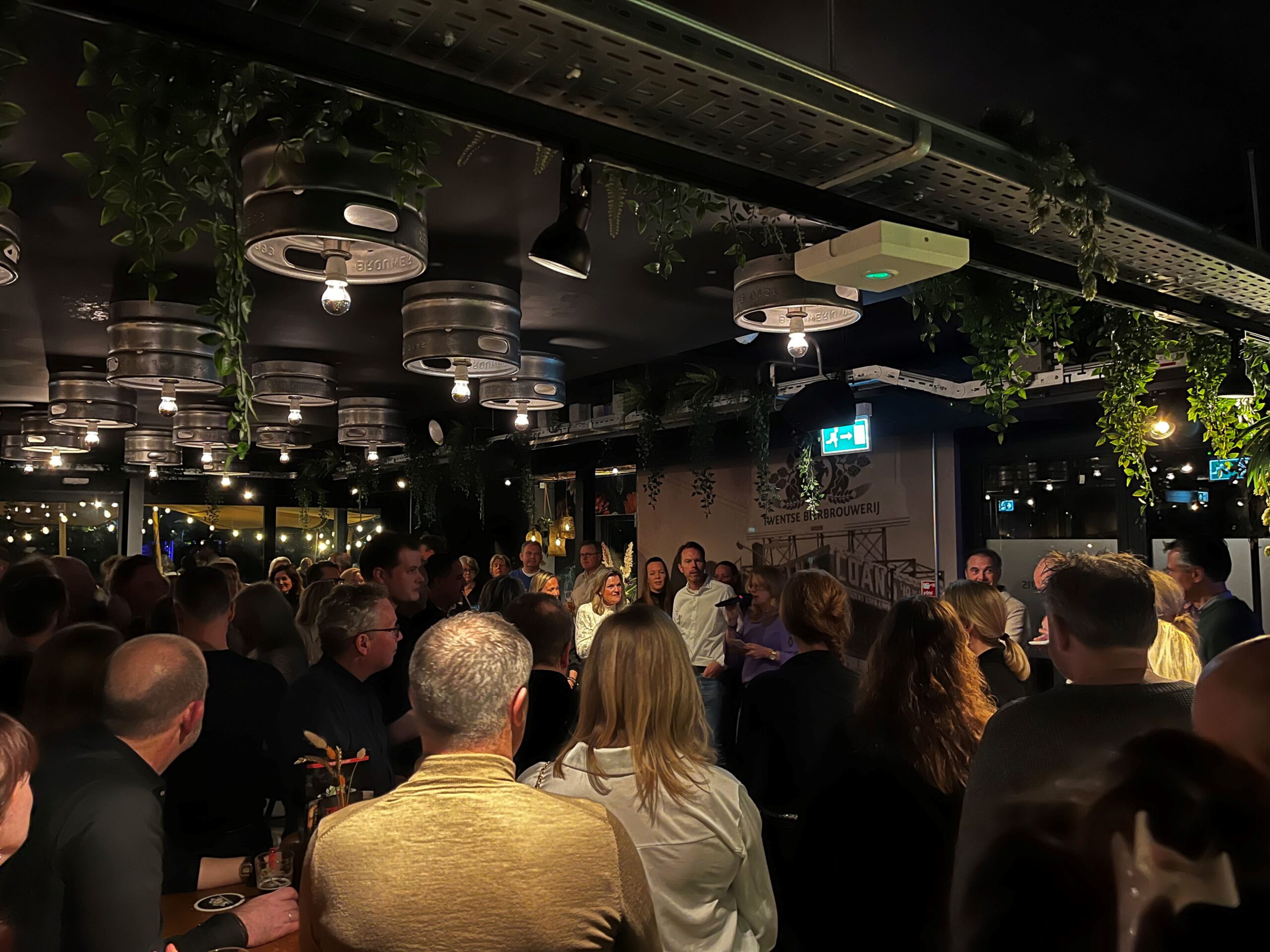 Ondertussen mocht de andere groep een kijkje nemen in de brouwerij. Hier kon iedereen een Twents Bok en Twents Honing Tripel proeven en werd er uitleg gegeven over de brouwerij en de geschiedenis van de Twentse Bierbrouwerij. Na de rondleiding, presentatie en proeverij was er kort de tijd voor netwerken en heerlijk eten.