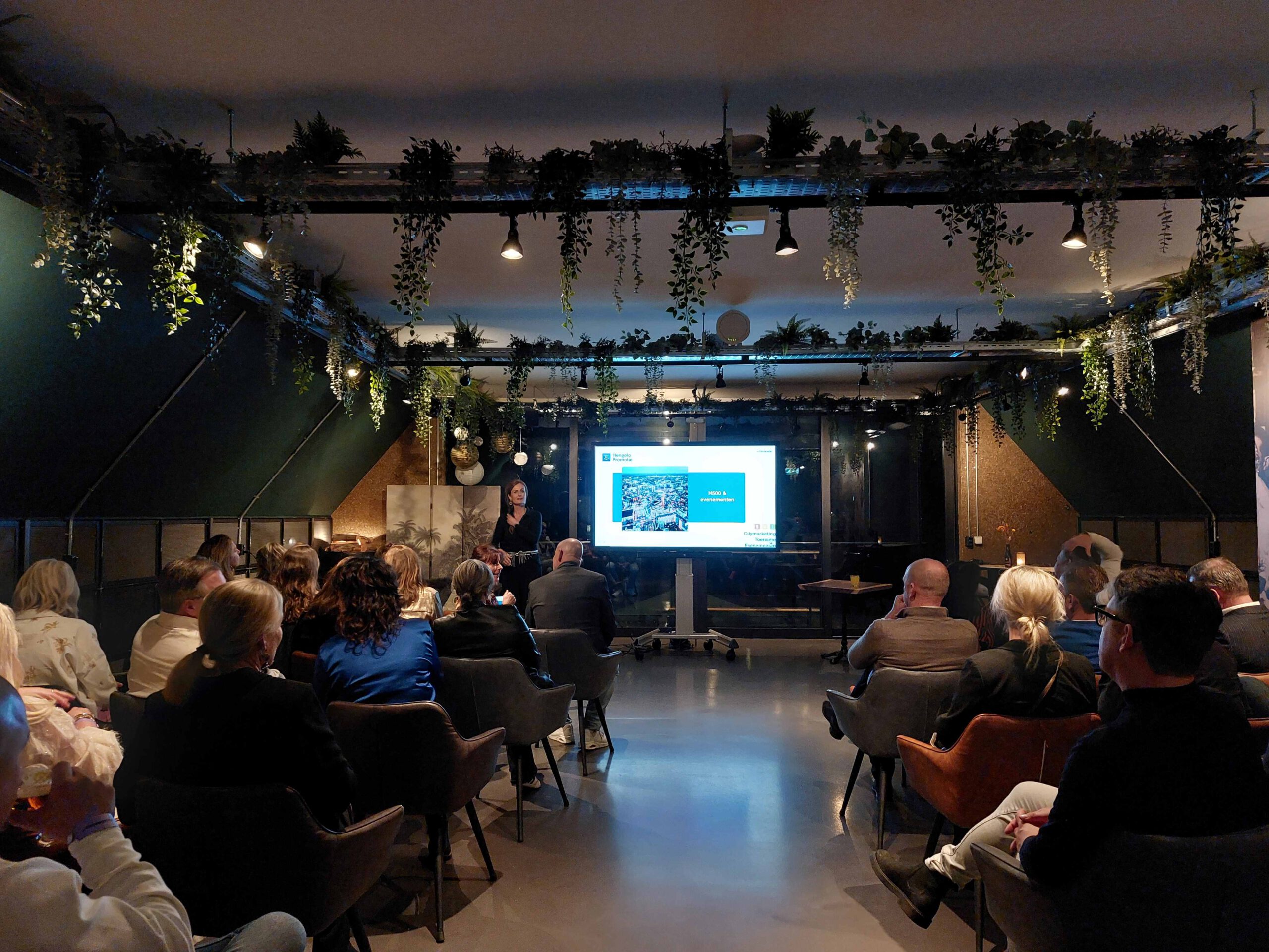 Via de ‘stairway to heaven’ sloot de eerste groep aan bij de presentatie van Hengelo Promotie; gegeven door Monique Delsing en Jim Korf. Centraal in de presentatie stond de H500 en evenementen. Onderwerpen waar leden vaak vragen over hebben en wij graag uitleg gaven over hoe dit in elkaar zit. Ook het moment om de mening van de leden te vragen. Bijvoorbeeld over ‘Hoe ziet jouw ideale Nacht van Hengelo eruit’ en het idee om de gelden van de H500 te labelen aan een evenement. Dat zou dan kunnen zijn LICHT Hengelo powered by H500. Dit wordt vervolgd!